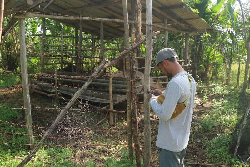 Installing a trail camera to monitor the area for tigers and wildlife, helping to alert farmers, protect communities and avoid conflict.